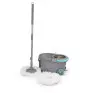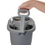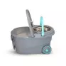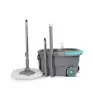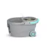 Cesto inox, cabo 160cm, 2 refis, dispenser para detergente, rodas e alca. Capacidade total 16 litros e util de 8 litros.